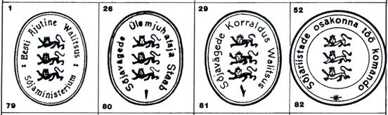 Aber während dieser Suche sind mir im Handbuch von Hurt / Ojaste einige Stempel aus dem Freiheitskrieg aufgefallen, die zeigen, dass es am Anfang der Republik einigen Stempelschneidern noch nicht so recht klar war, wie denn nun eigentlich die Wappentiere aussehen.