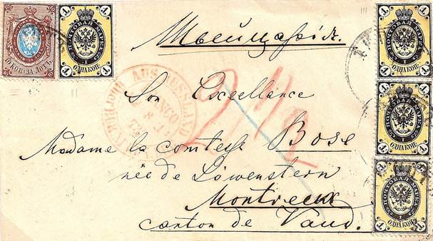 Der Brief aus Dorpat in die Schweiz aus dem Jahr 1873 wurde vom Absender mit 14 Kopeken frankiert. Dieses Vorgehen war erst ab dem 13. April 1863 möglich geworden. Der gewählte Portosatz galt jedoch für einen Brief mit einem Gewicht bis zu einem Lot nach Preußen, Österreich und allen zum Deutschen Postverein gehörenden Ländern, jedoch nicht in die Schweiz. Deshalb wurde er dort mit einer Nachgebühr von 2½ Centimes belastet. -