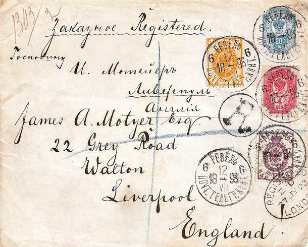 Bis einschließlich 1898 wurden bei der russischen Post keine Registrierzettel oder –stempel für die Kennzeichnung von Einschreibsendungen verwendet. Es genügte die handschriftliche Kennzeichnung. Nicht immer erfolgte die Kennzeichnung zusätzlich mit einem Stempel ohne Registriervermerk.